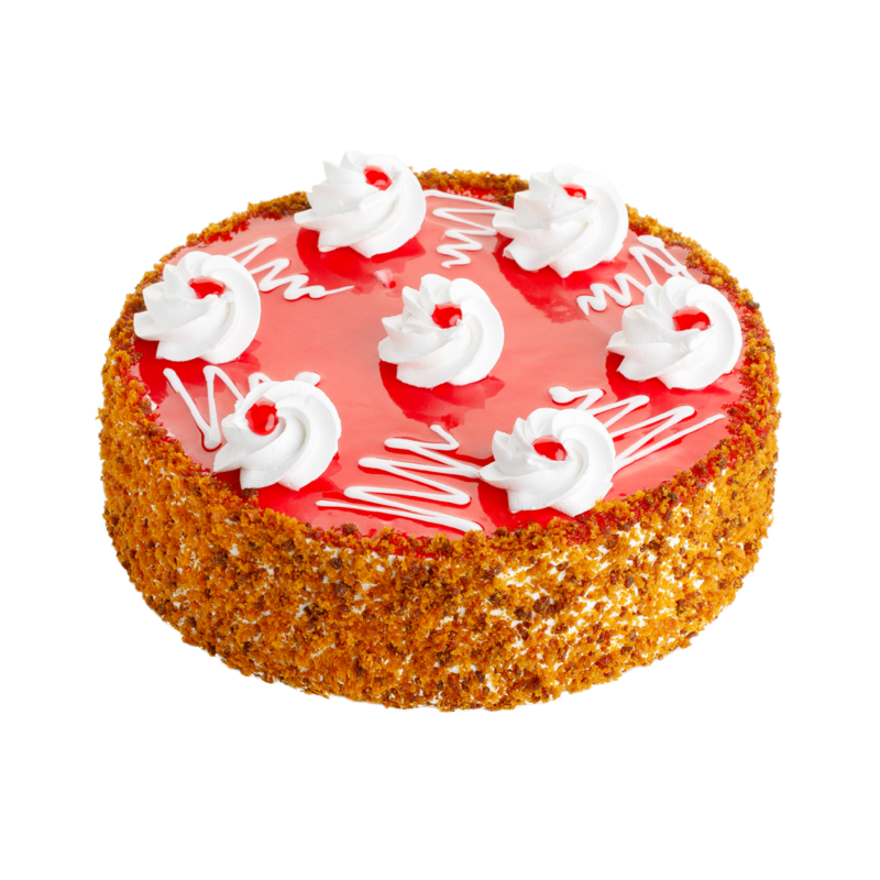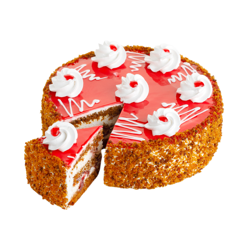 Honey sponge cake, whipped cream, and sour cherry filling.