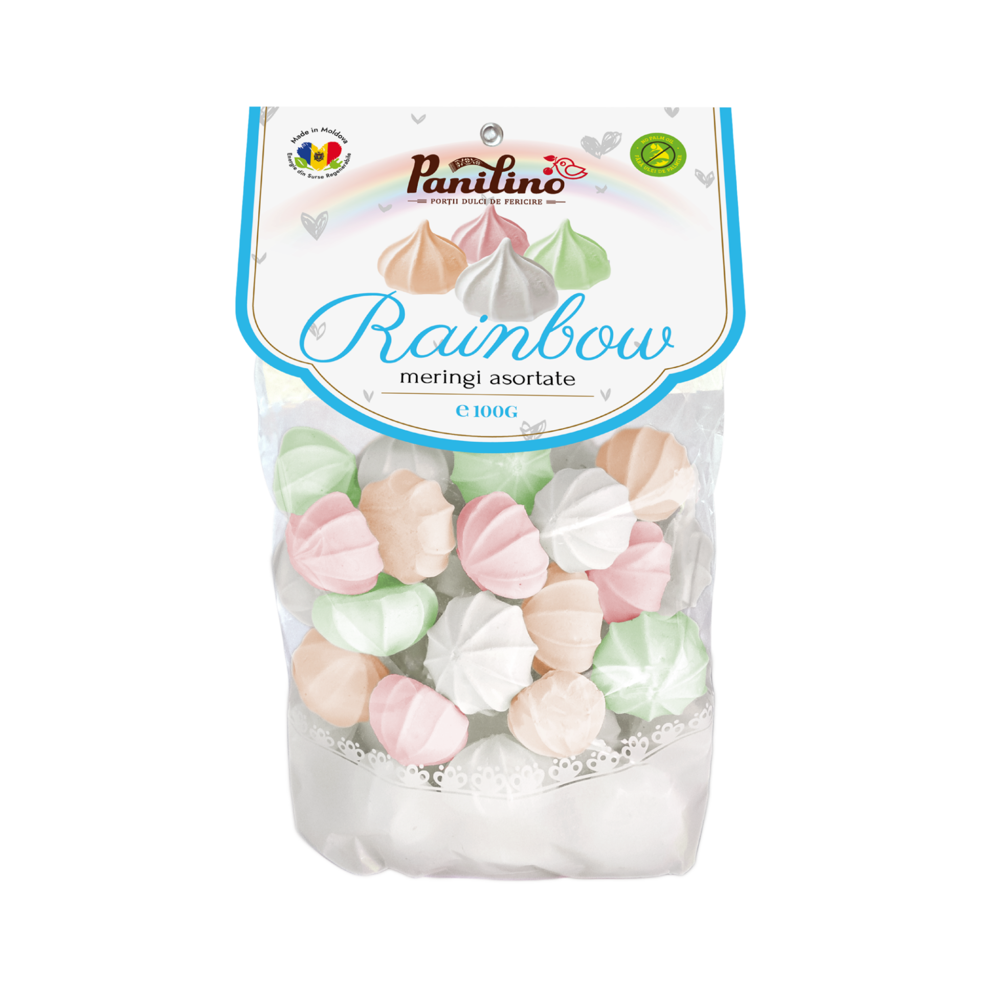 A dessert made from whipped egg whites and sugar, with a mix of fruity flavors.