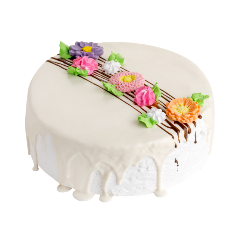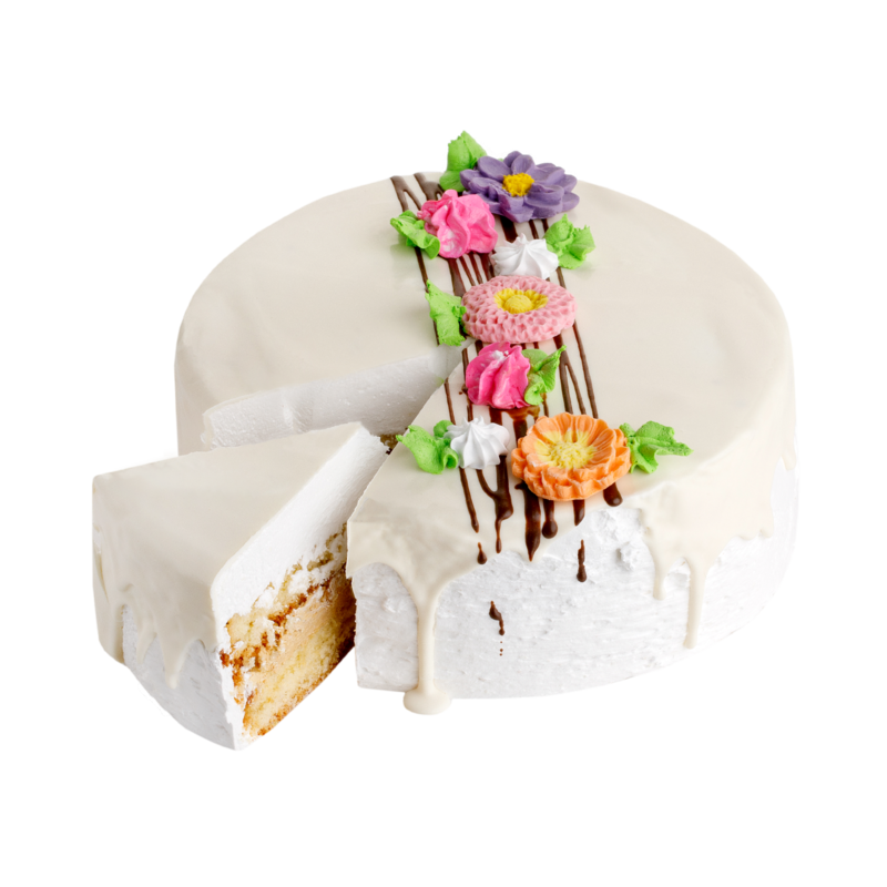 Sponge cake, whipped cream, sweetened condensed milk, and peanuts.